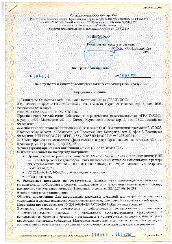 Гранулят из синтетического каучука и стойких пигментов. Экологически чистый материал, входит в состав бесшовных спортивных покрытий. Устойчив к воздействию ультрафиолета, водных и химических растворов. Сохраняет яркость цвета на протяжении 10–15 лет.