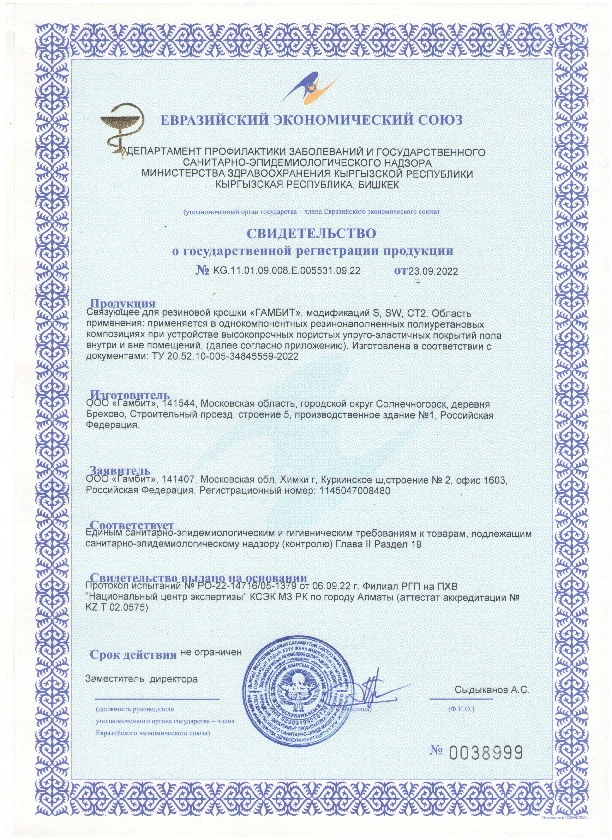 Полимерное связующее для спортивных покрытий. Хорошо взаимодействует с различными видами фракционных наполнителей. Смешивается с ними в пропорции 1:4,2. Средняя скорость полимеризации — от 1 до 5 дней.